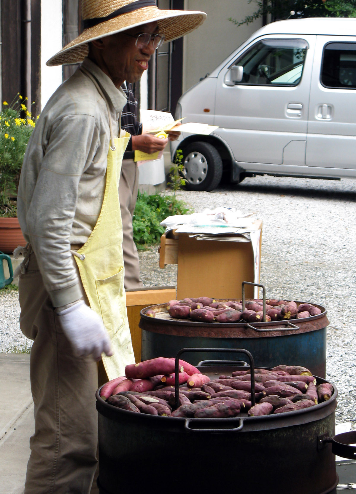 境内では出来たての焼き芋が配られる。